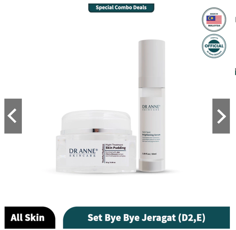 Asalnya, Dark Spot Brightening Serum dan Night Treatment Skin Pudding dijual secara berasingan. Namun, atas permintaan ramai dan untuk memastikan rawatan jeragat anda optimum dan berkesan 10x ganda, kami telah menggabungkannya: